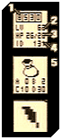 El rectángulo o mapa (1) tiene unos puntitos fijos que son los eventos del mapa y un puntito parpadeante que nos muestra nuestra posición actual. Al lado hay una flecha (2) que nos indicia la dirección actual del movimiento, y se puede variar pulsando los botones de dirección. Debajo hay una leyenda que dice MAP (3) con un número que corresponde al mapa en el que estamos en ese momento y suele coincidir con el Nivel del Chocobo. Y al fondo, al lado de un sÃmbolo de un reloj aparece el tiempo total de juego (4)